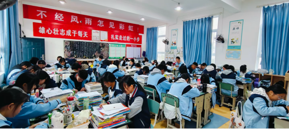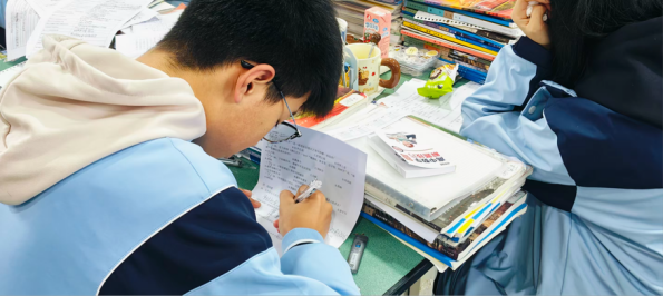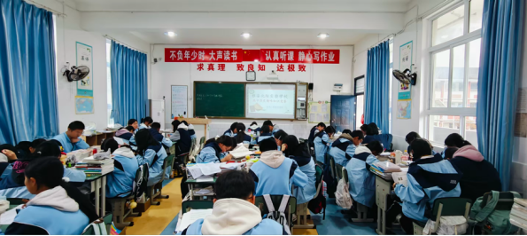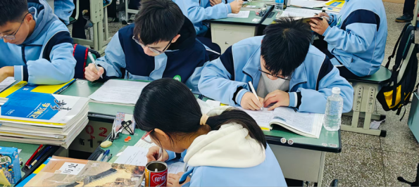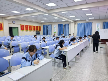 同学们端坐桌前答题,试卷上满是古代制度、近代事件题。有人对着朝代时间线托腮思索,有人在历史事件影响题下快速书写,笔尖似与过往对话,答题中梳理历史脉络。
