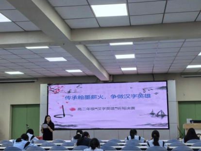 “高中部汉字英雄听写决赛”现场,同学们专注作答。面对易错字词蹙眉思索,写雅致词语时笔锋流畅,有人默念核对字形,有人手指比划间架。纸笔摩擦声交织,书写中传递对汉字韵律与文化的感知。